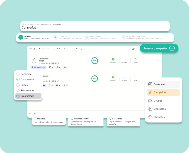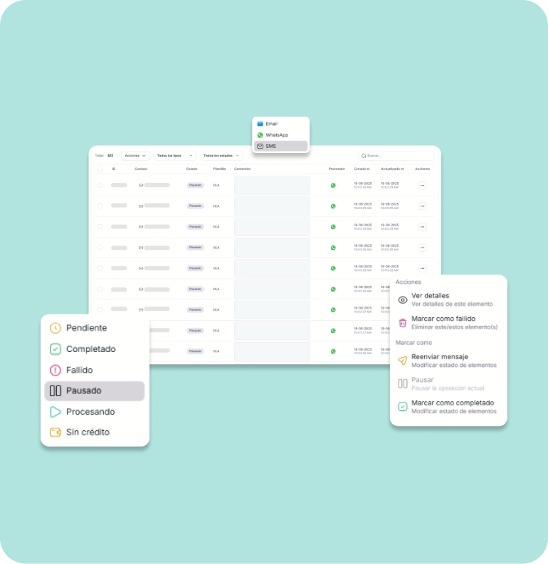 Crea y envía mensajes masivos, notificaciones de pago y recordatorios personalizados en segundos.