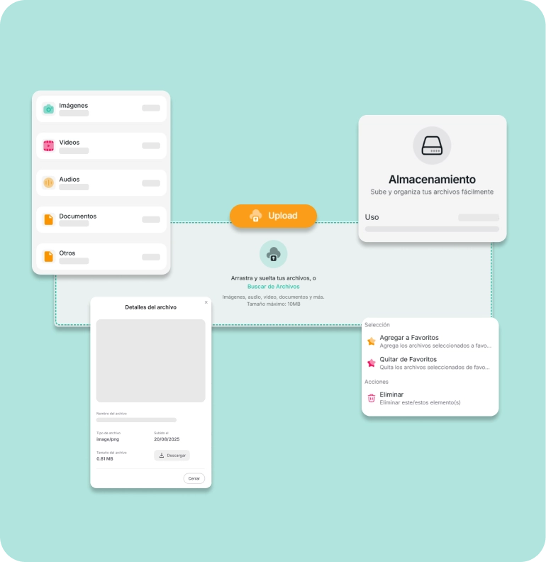 Guarda imágenes, videos, audios y documentos PDF para usarlos cuando lo necesites en tus mensajes.