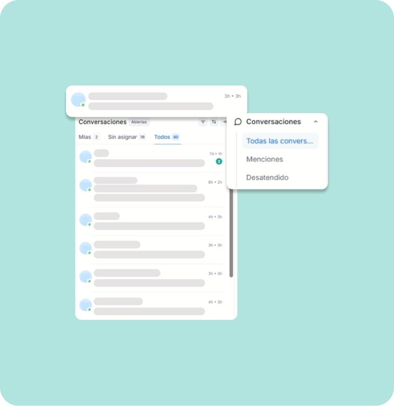 Asigna conversaciones por área (ventas, soporte, cobranzas) y trabaja en equipo sin perder el control.